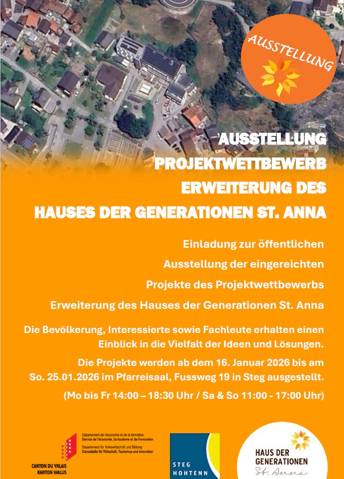 Das Haus der Generationen St. Anna und die Gemeinde Steg-Hohtenn laden Sie herzlich zur Ausstellung im Pfarreisaal ein.